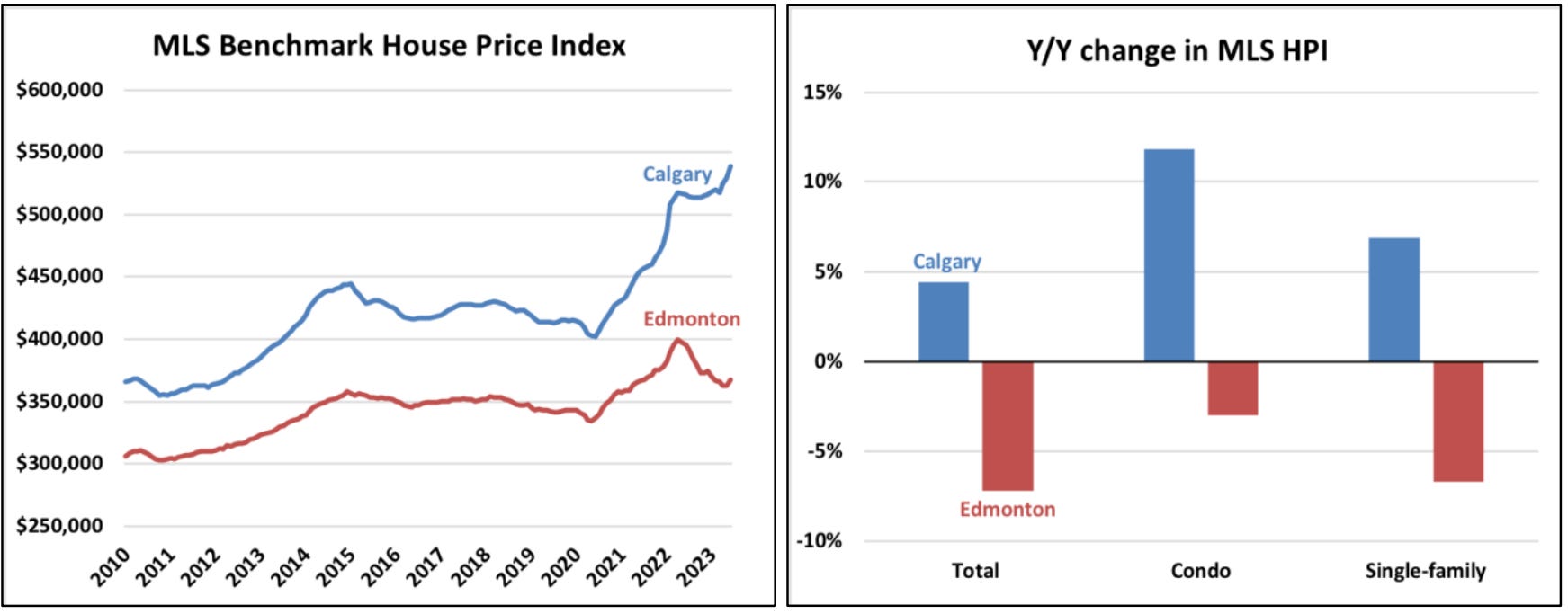 最近几个月卡尔加里的房价处于上涨态势。 卡尔加里和埃德蒙顿的房价在6月份都有所上涨,但埃德蒙顿的房价仍低于去年同期水平。在这两个城市,公寓市场表现优于整体市场。见下图