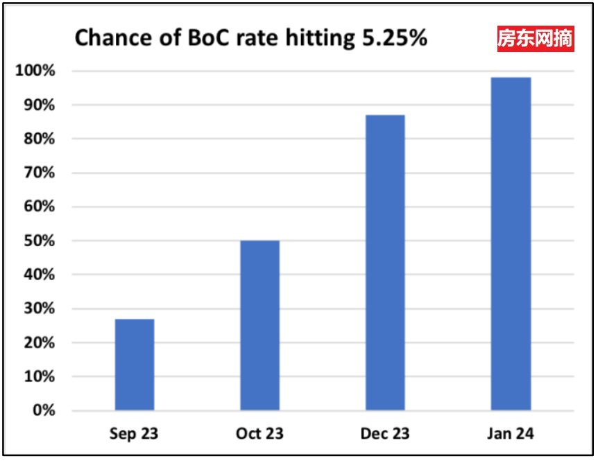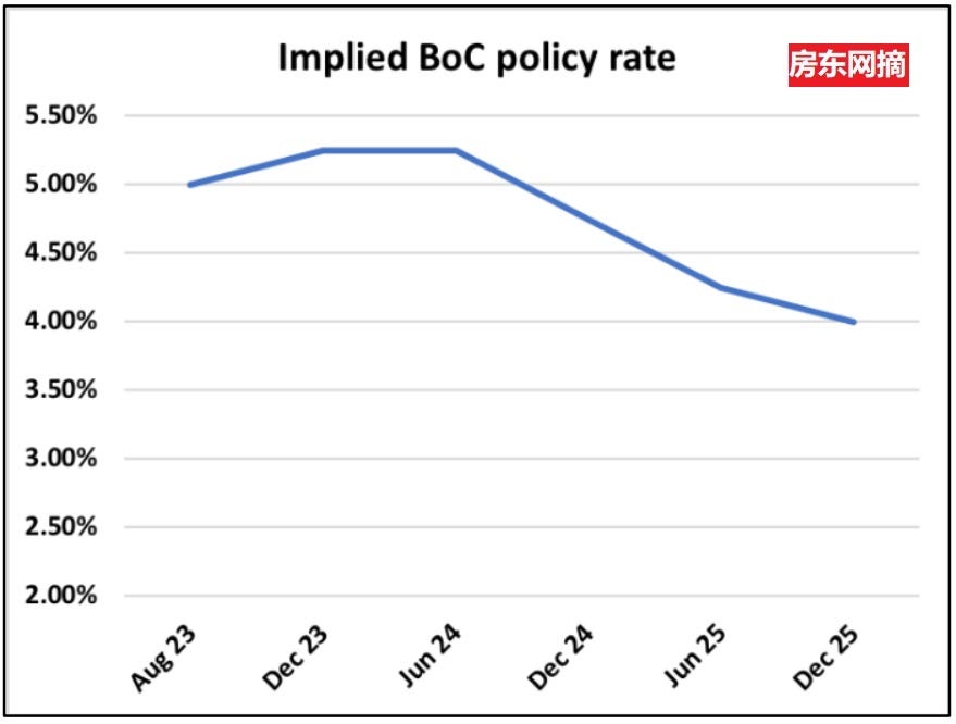 这将使BoC隔夜利率达到5.25%,这是市场预期的峰值,然后在2024年中期之前开始下降。