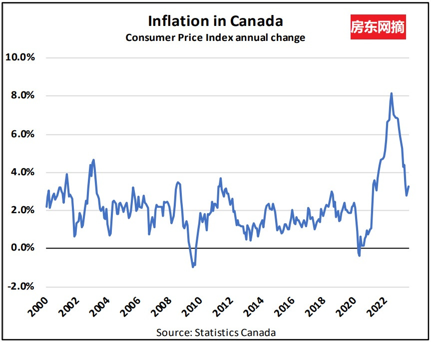 下图是加拿大2000年以来CPI变化曲线示意图: