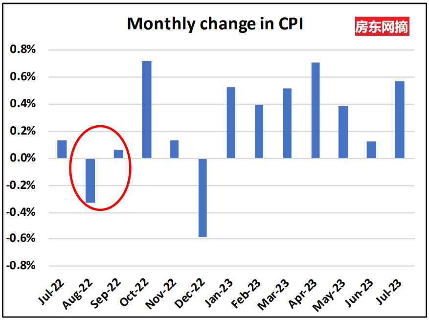值得村友们注意的是:2022年8月和9月的月度CPI数值很低,见下图。基于基数效应Base Effect, 这将在使得接下来的2个月的CPI数值提升。